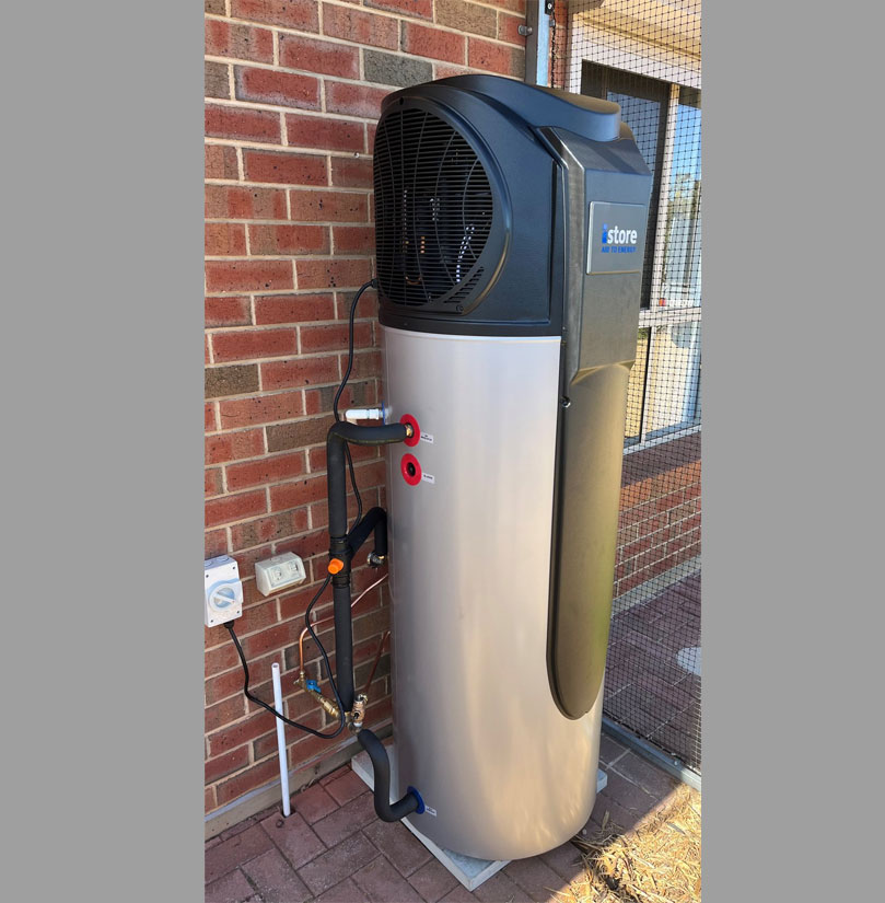 Storage Hot Water System. Insulated tank to store hot water using either gas or electricity.
